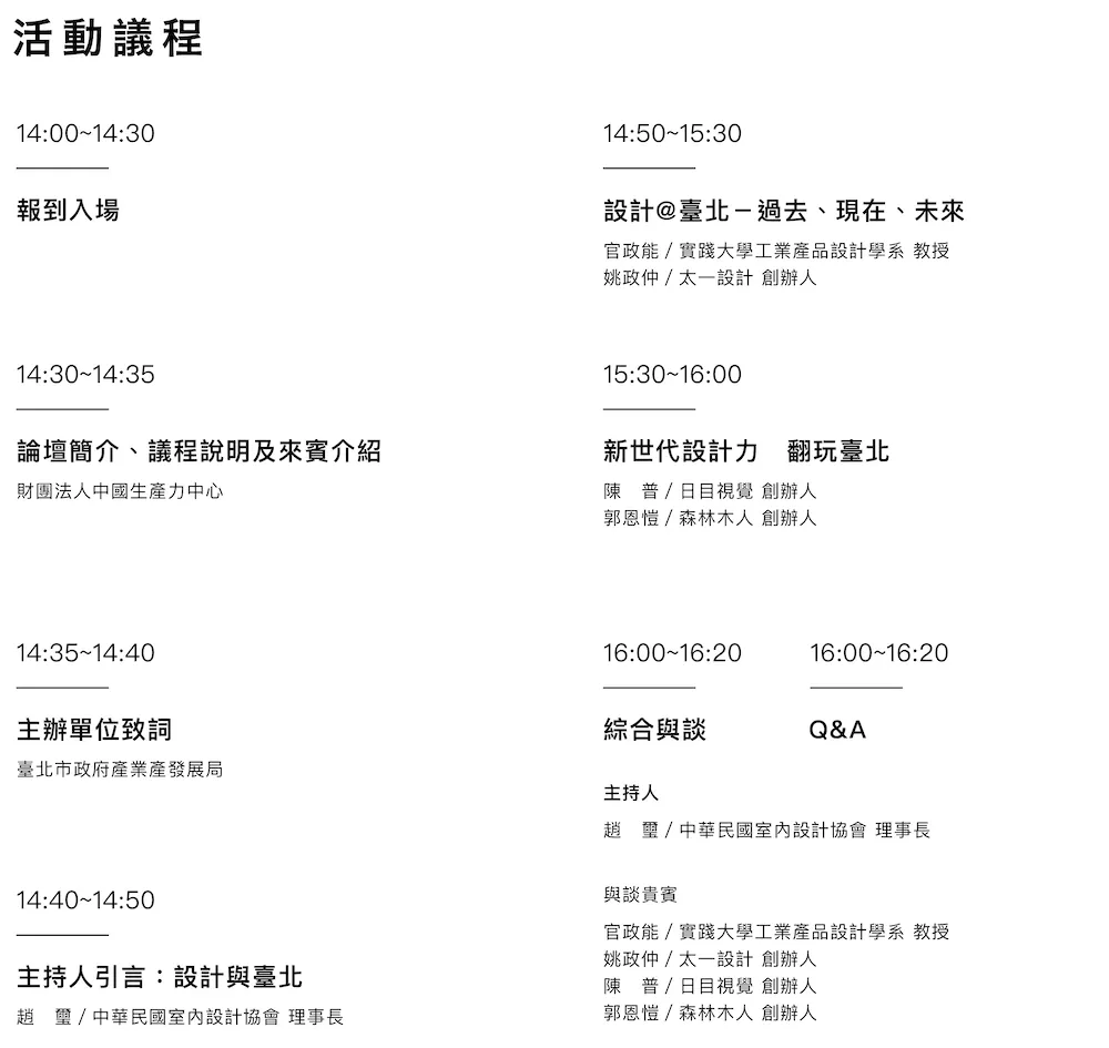 臺北・設計講——設計師講座