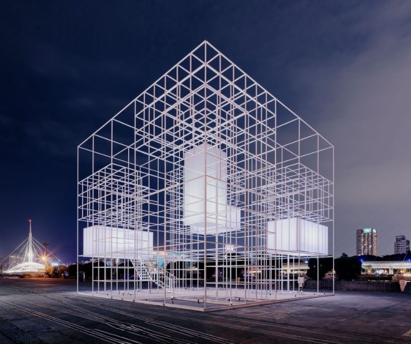 THE CUBE – embodies QIU's extensive exploration of 2021 Kaohsiung International Container Arts Festival main theme: Van Buren Supernova – A theme revolving around light, star constellations, new life, and hope. THE CUBE is to spark the imagination about Kaohsiung's future while firmly linked to the city's port heritage. The pavilion is the most ambitious structure and largest pavilion in more than a decade of the Kaohsiung International Container Arts Festival.