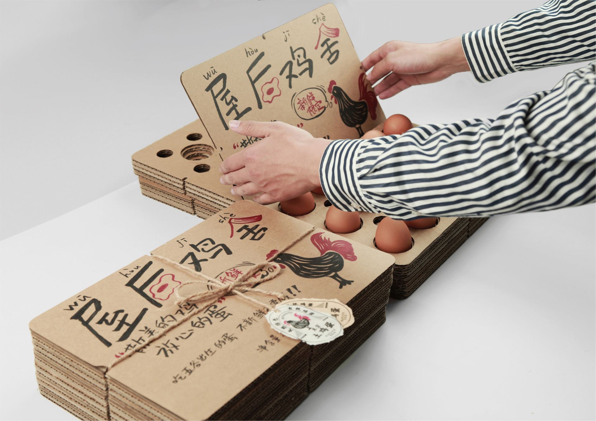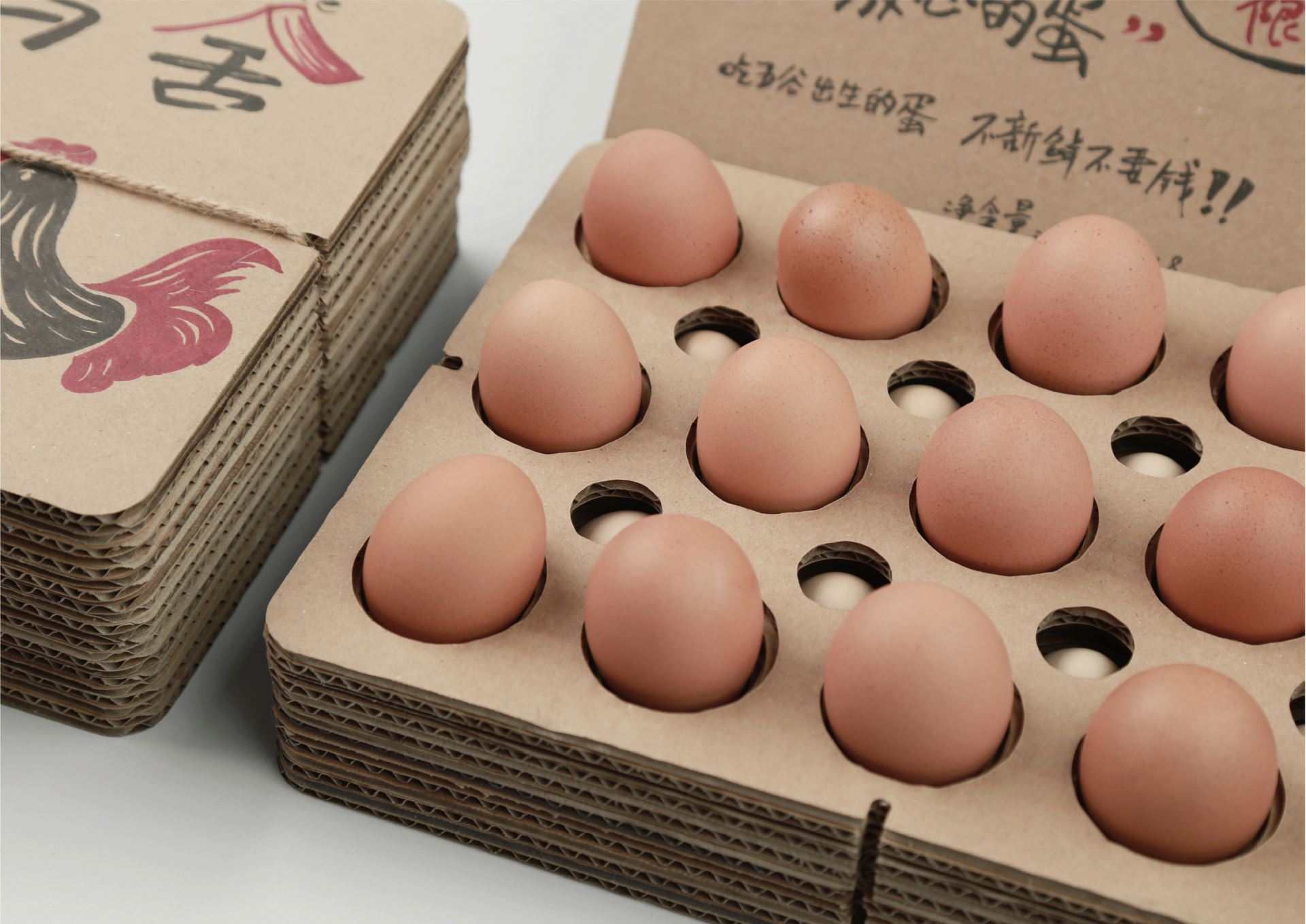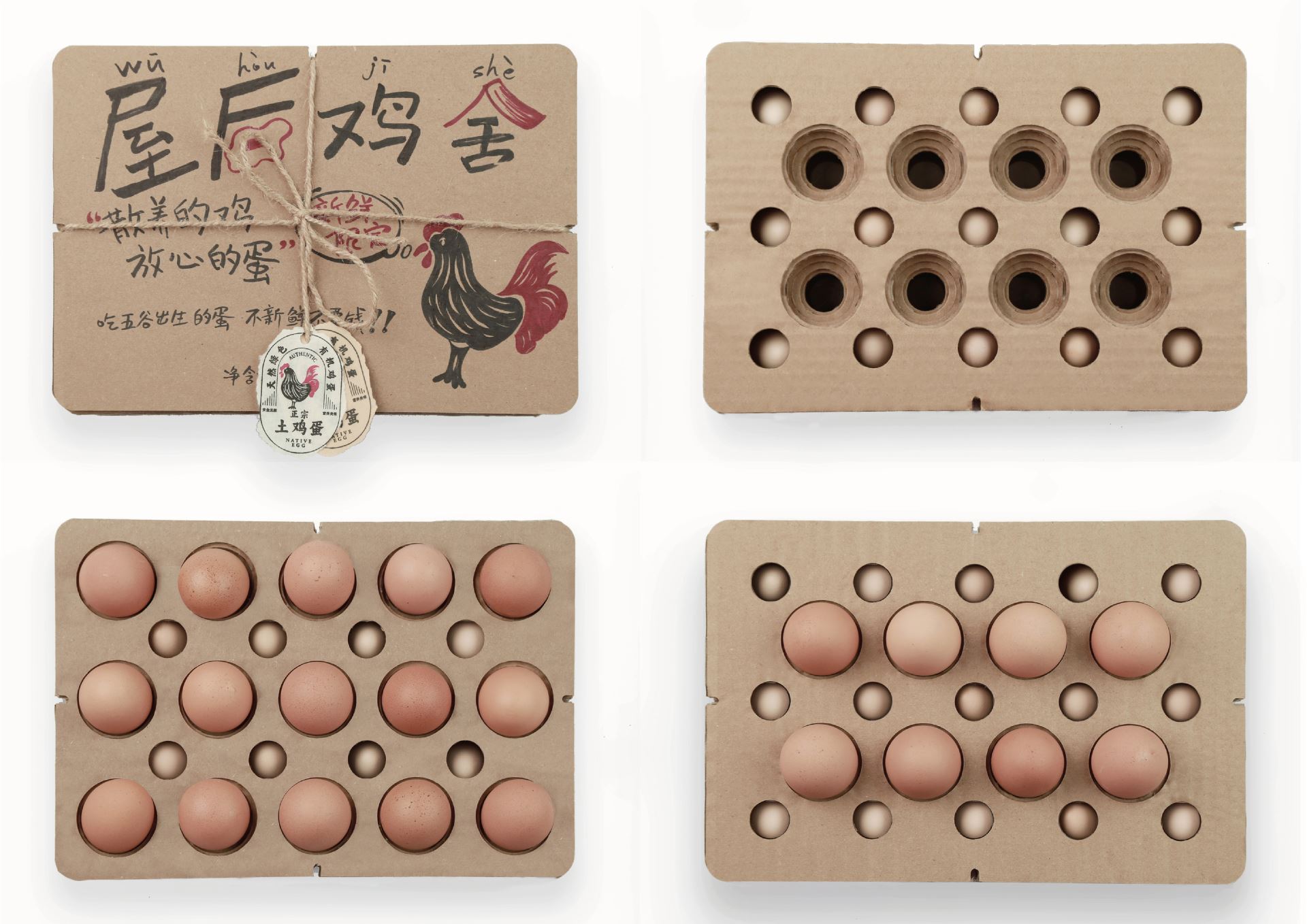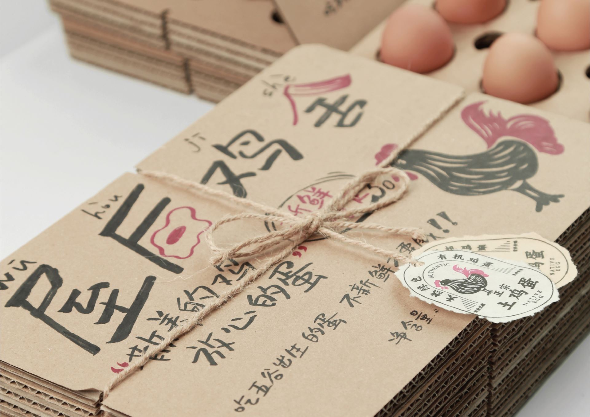 Design Description: From the field to the market, every free-range, farm-fresh egg tells a story of nature. This corrugated cardboard egg box, with its unique design, not only showcases the simplicity and beauty of farm life but also offers a practical and environmentally friendly solution. The labels for pollution-free eggs and organic foods guarantee quality directly from farm to table, while the combination of handwritten labels and pressed illustrations creates a visually organic experience. Structurally, this egg box features a layered design with interlocking egg slots that are not only aesthetically pleasing and orderly but also maximize space utilization, providing exceptional shock absorption. The corrugated cardboard’s stacked openings visually create a harmonious unity of order and beauty. Whether it's displayed at a market stall or stored in a modern kitchen's refrigerator, this egg box offers optimal protection, perfectly cradling those fresh eggs nurtured by nature, while also conveying a message of healthy, eco-friendly living. In the fast pace of modern life, it serves as a reminder to slow down and appreciate the simple yet beautiful things in life.
