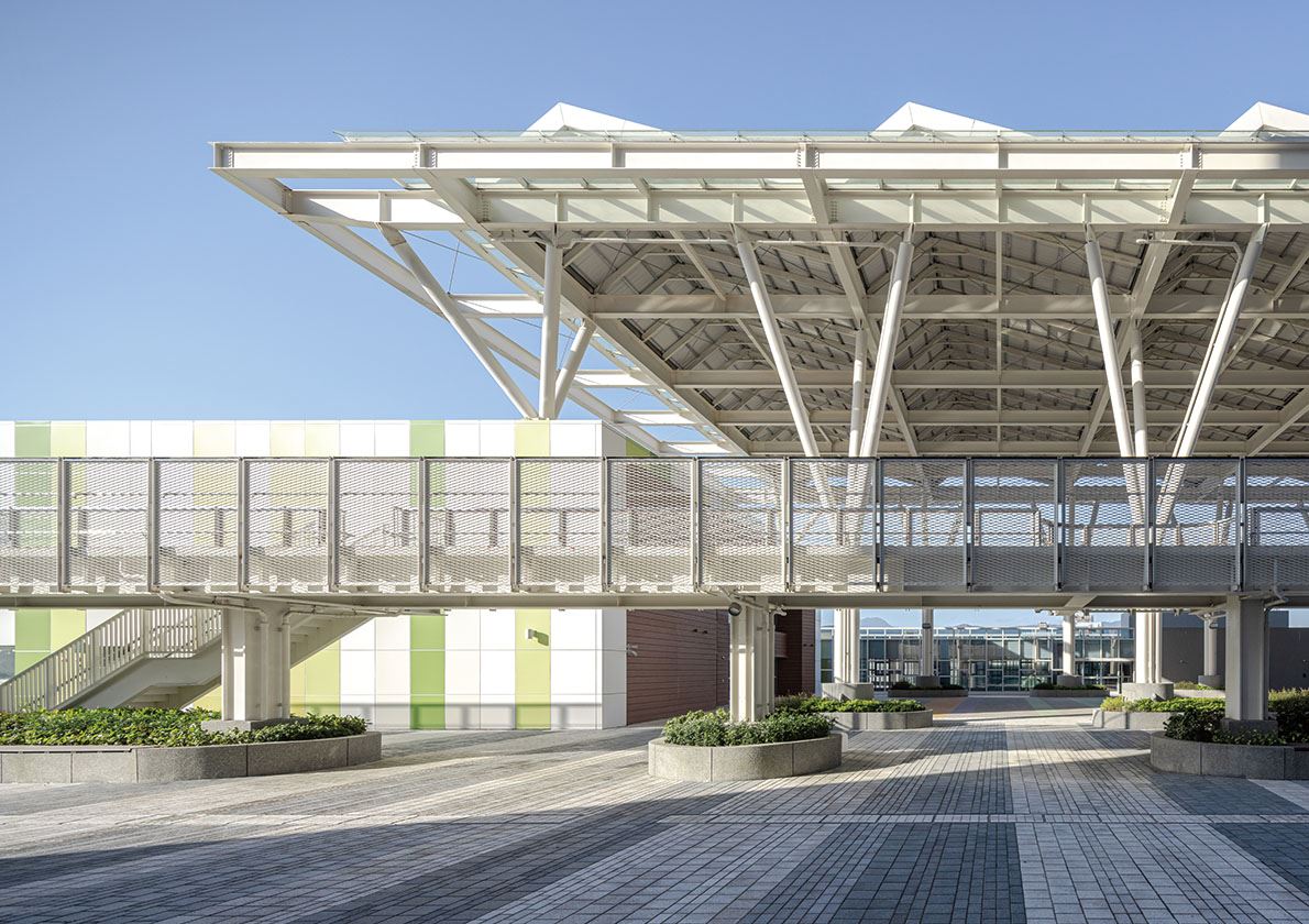 基地位置雖相對獨立,但具有鄰近南港三鐵共構樞紐的優勢,也成為臺北市未來重要的新創基地。透過導入都市空橋系統、立體生活平台與開放入口廣場,強化步行友善性,將原先孤立的高架平台轉化為可及性高的生活場域,與周邊都市及環境紋理重新連結。