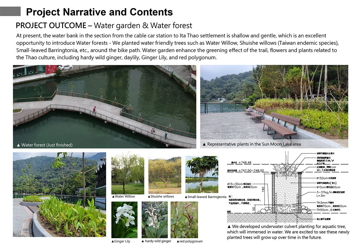 The Sun Moon Lake Area is rich in ecology and beautiful scenery. However, too many tourists made the local community area crowed and lower the recreational experience. The goal of this project is to build a bicycle path, and introduce new recreational attractions based on the culture of the Thao people.