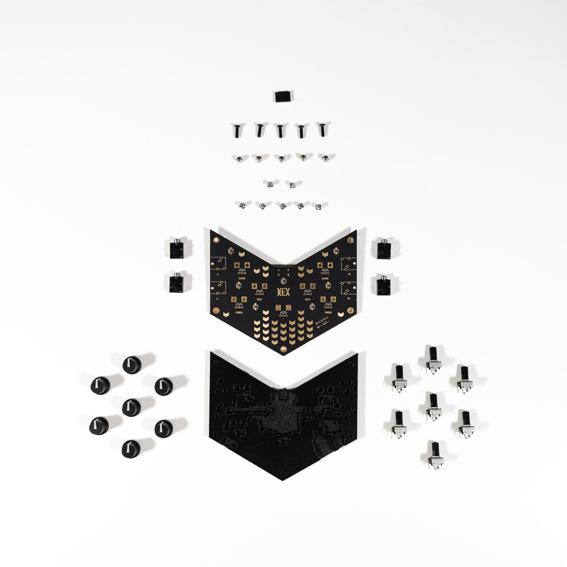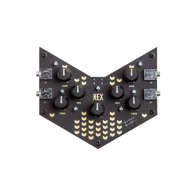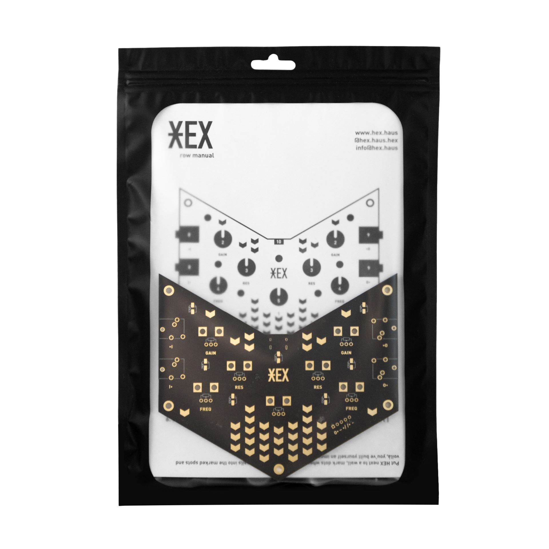 HEX row is an analogue dual resonant filter with versatile routing capabilities, sidechain/envelope follower and mischievous character, stemming from (mis)use of transistors as variable resistors in the signal route.