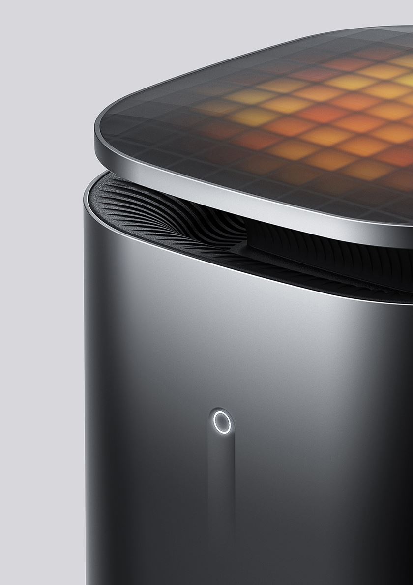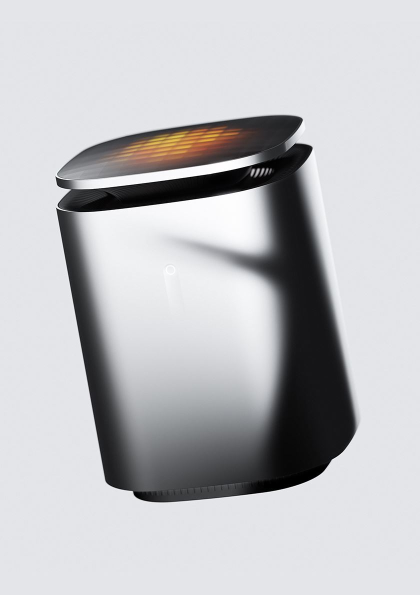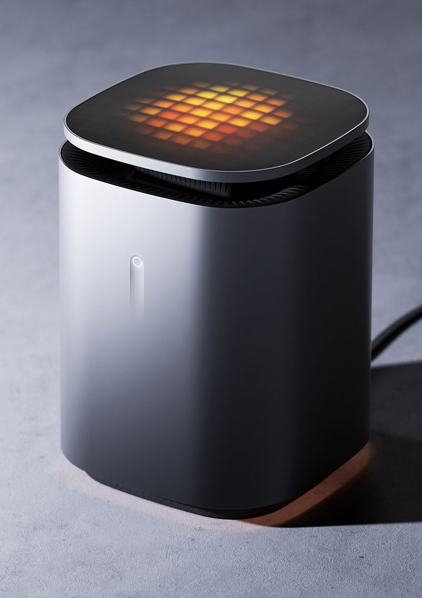 Its compact, rounded form is finished in a gradient texture resembling burning charcoal. A vertical airflow system ensures efficient heat distribution. Unlike conventional heaters, Filo merges smart sensing and emotional design to create a personal, meaningful warmth.