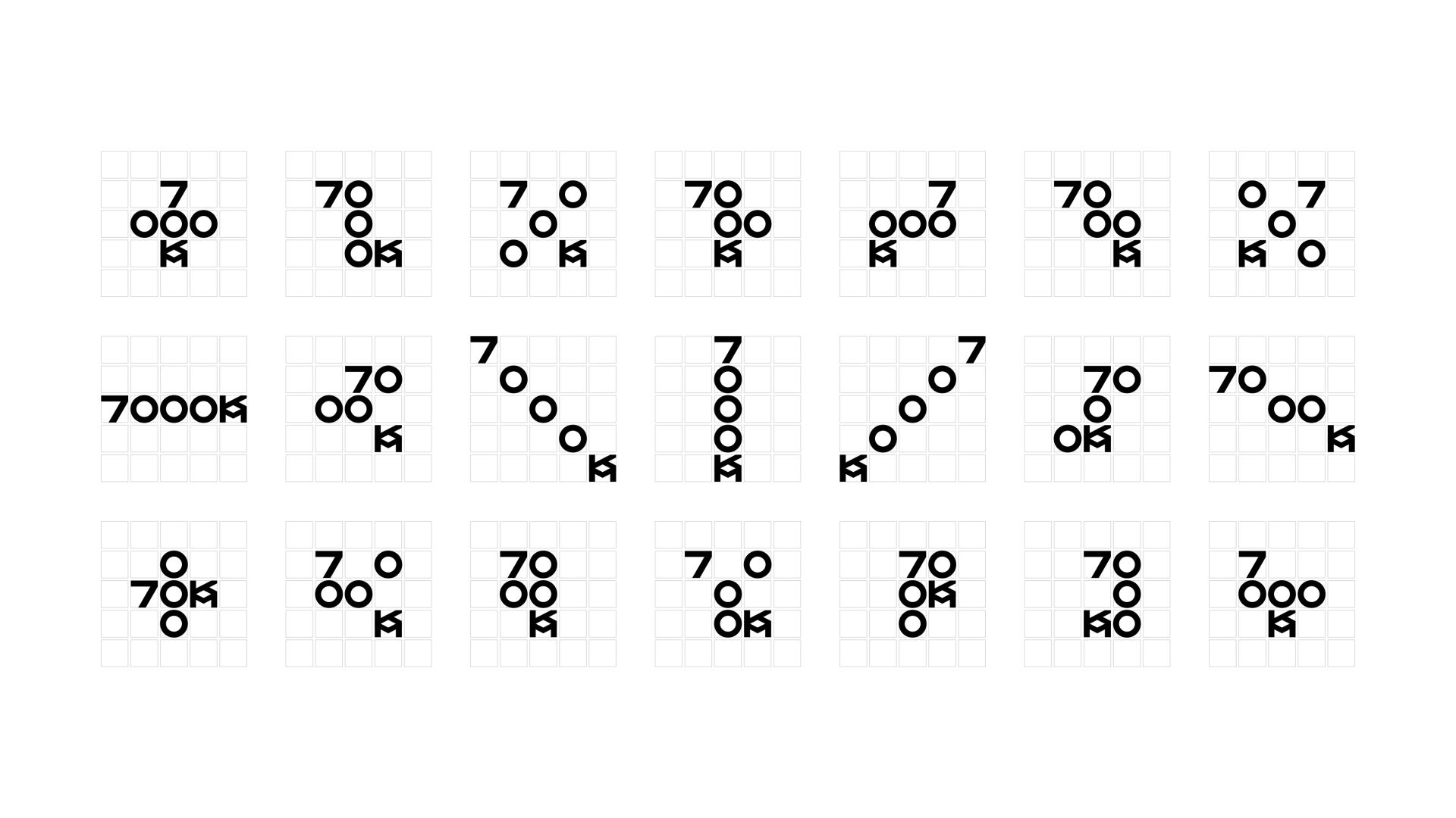 我們對國際貿易和絲綢之路的理解是自由的、靈活的、如網路蔓延的友好往來,因此我們為7000KM創造了一套基於網格系統的Logo和視覺識別系統。 7000KM的字母濃縮進一個5×5網格中,在規則下排列穿梭,因此Logo變得動態和有趣,呼應了貿易網絡的自由靈活。同時數字0也可以延展成代表貿易和絲路的“地圖路線”,從一個起點(數字7)串聯到達一個終點(字母KM),強化了品牌印象,豐富了品牌的情感屬性,幫助品牌更快速的發展。
