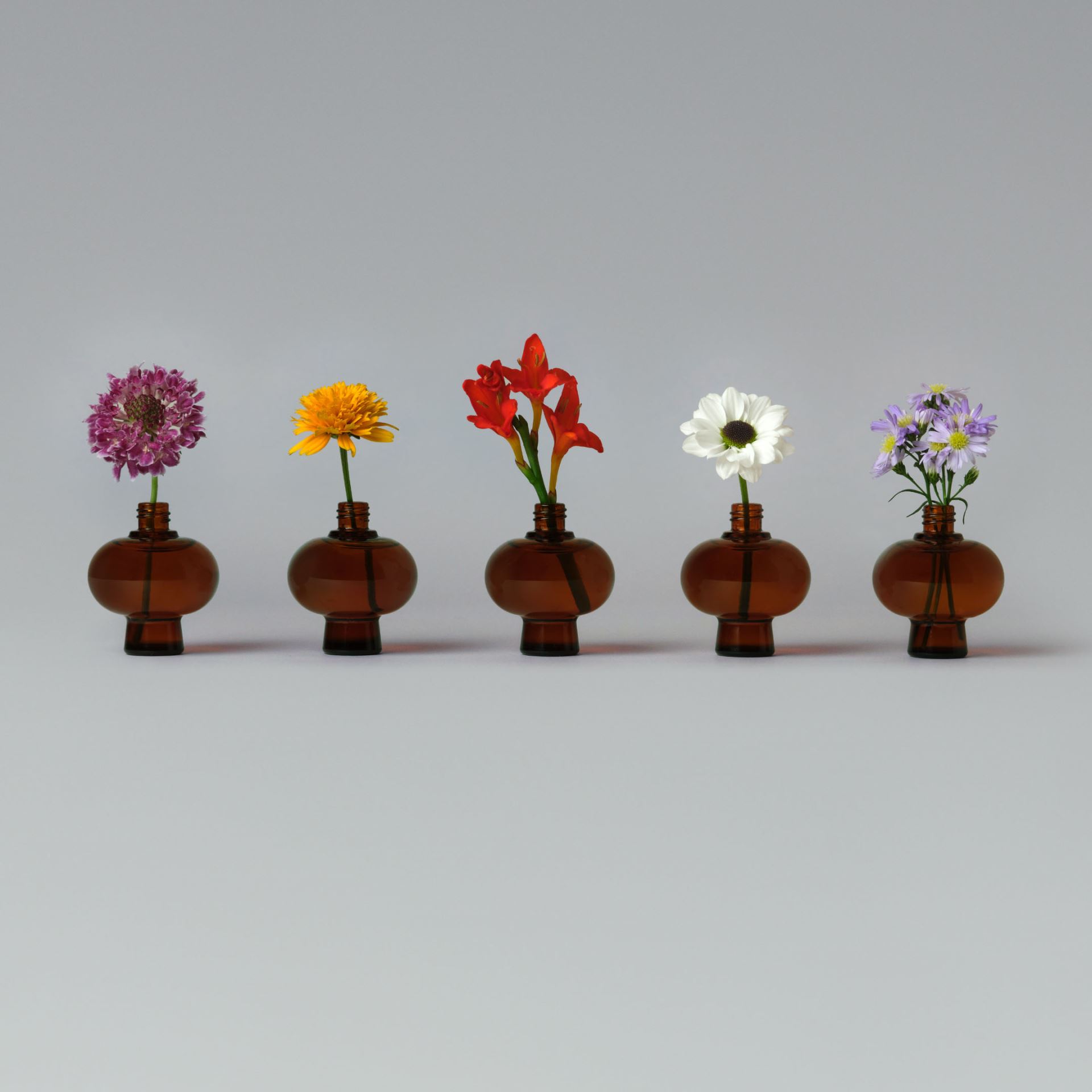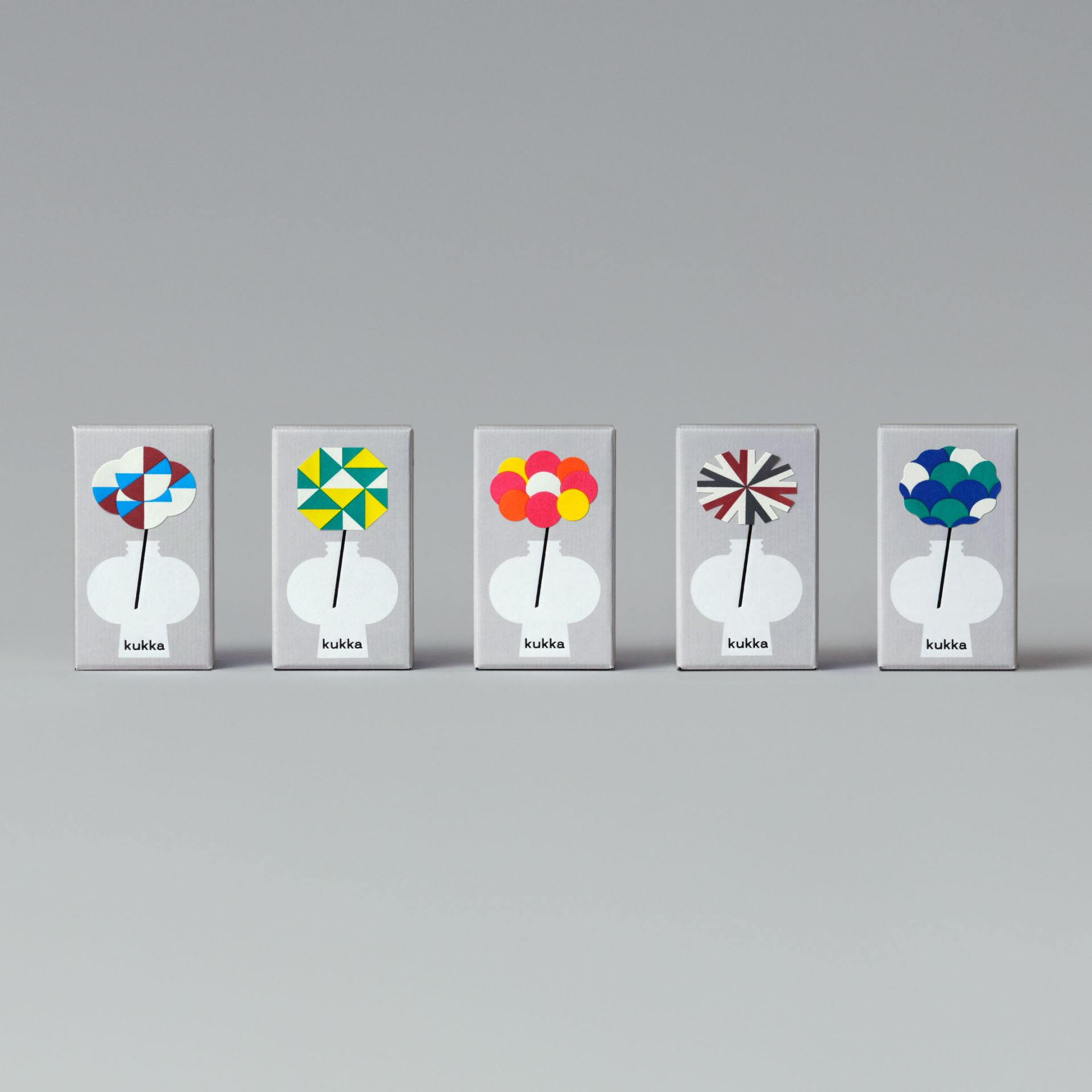 Packaging reflects the brand’s care and softness. The outer box uses FSC-certified paper, with a flower vase silhouette printed on the surface and stems finished with hot foil stamping. Each of the five scents has its own label combining letterpress and foil. Labels are applied by hand to a shared box design, highlighting individuality while reducing packaging.