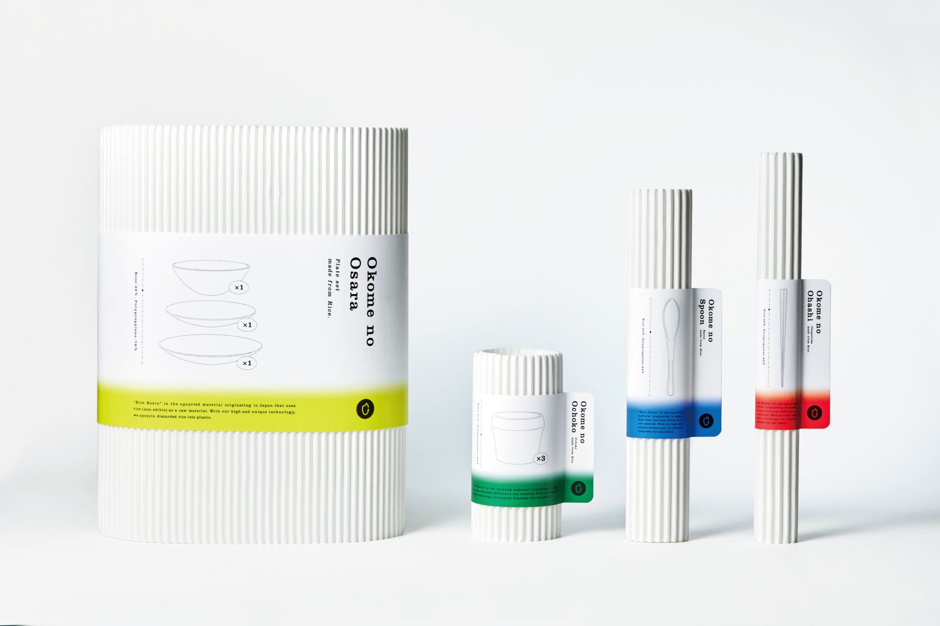 The package design for a series of cutlery made from "rice resin", an ecological plastic derived from rice.
